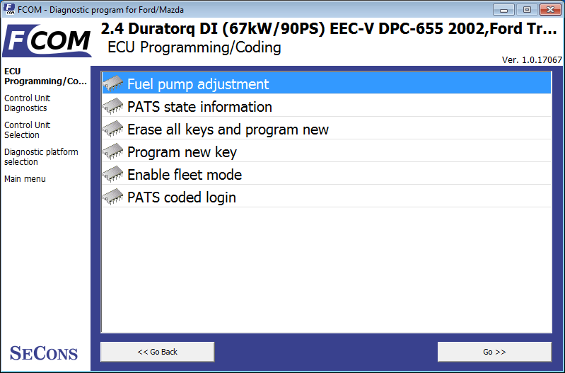 Si vous ne trouvez pas la fonction de réglage de la pompe à carburant dans le menu, veuillez nous envoyer un fichier avec un instantané rapide (allez dans le menu Identification de l'unité de commande et cliquez sur le bouton Enregistrer les informations de l'ECU), le numéro de pièce de l'ECU (xxxx-12A650-xx) et le code VIN à l'adresse [email protected]. Une fonction sera ajoutée.