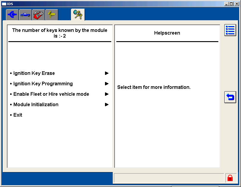 Cette fonction affiche toutes les informations importantes sur le système PATS et son état. Ford IDS ne fournit pas cette fonction.