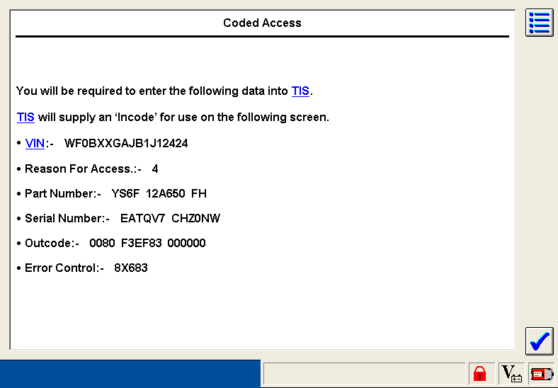 //Pour chaque OUTCODE généré par l'unité de contrôle, il est nécessaire d'obtenir un INCODE unique. Utiliser un seul et même INCODE lors de plusieurs opérations avec PATS n'est pas possible.//